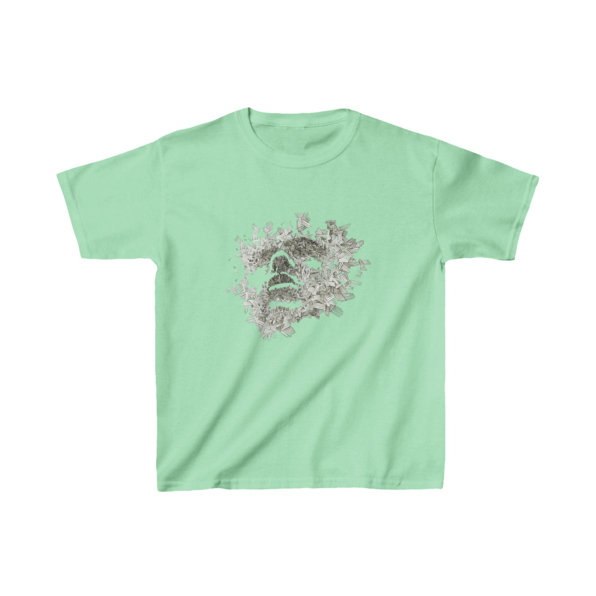 The kids heavy cotton tee is perfect for everyday use. The fabric is 100% cotton for solid colors. Polyester is included for heather-color variants. These fabrics are prime materials for printing. The shoulders have twill tape for improved durability. The collar is curl resistant due to ribbed knitting. There are no seams along the sides.